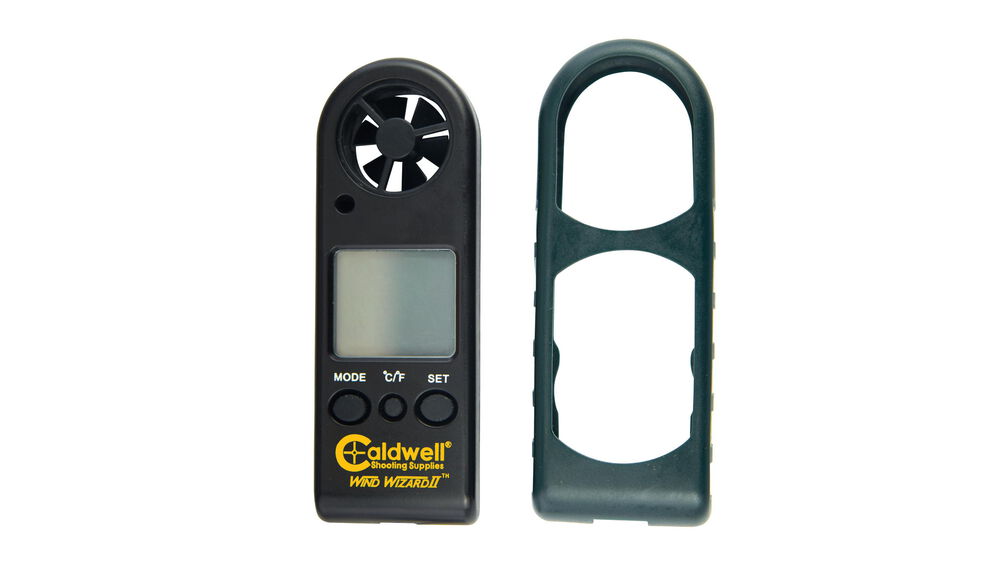 La Caldwell viento Wizard II ha sido diseñado para ser el mejor medidor de viento. Conociendo la velocidad del viento da al tirador la capacidad de juzgar la colocación de un disparo en diferentes condiciones de viento. Lee viento y temperatura en diferentes unidades de medida. El manguito de goma antideslizante protege la unidad y asegura el fácil agarre incluso con guantes. Funciona con una pila CR2032 (incluida). Medidas de velocidad del viento en mph, ft / min, km / h, m / s, o nudos Pantalla de enfriamiento del viento. Visualización de la temperatura en grados Celsius y Fahrenheit retro-iluminación LCD.Apagado automático.