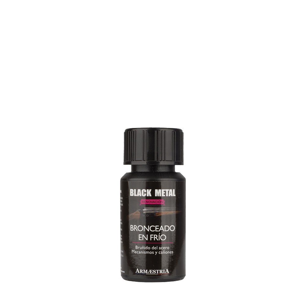 - BLACK METAL es un producto para bruñir acero para armas (rifle, pistola…) a temperatura ambiente, dando un aspecto negro/azulado muy bonito.