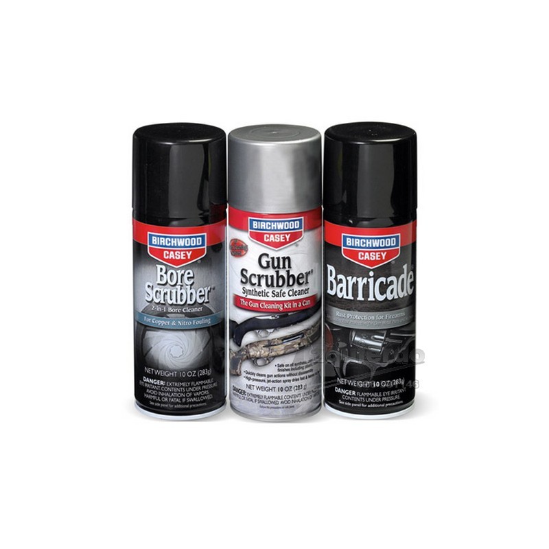 Esta constituido por un disolvente, un limpiador y un protector. Primero utiliza Bore Scrubber para disolver las incrustaciones de cobre y residuos que quedan tras disparar su arma. Segundo, limpia el material disuelto con Gun Scrubber y tercero, cubre con Barricade para proteger tu arma de la oxidación
