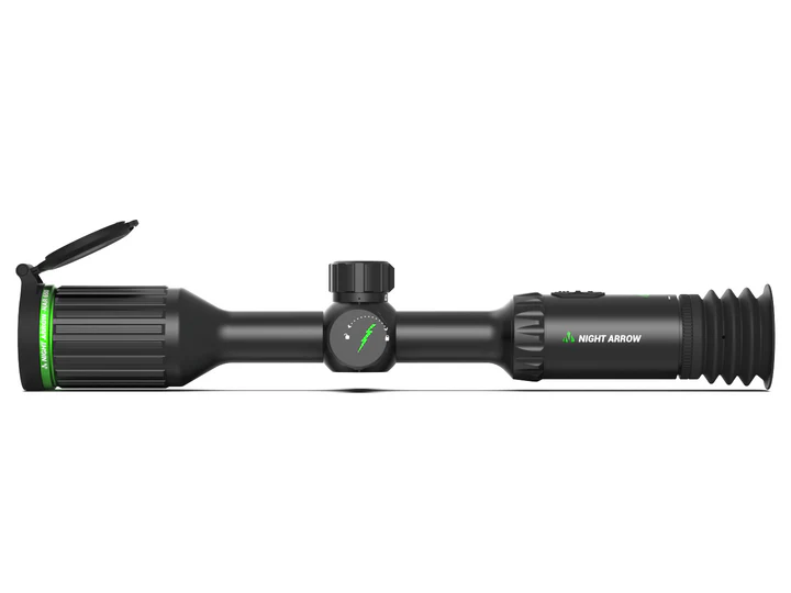 Utiliza un sensor de imágenes térmicas de 12 μm con menos de 15 mk NETD, Además, Night Arrow admite una batería extraíble externa para aumentar su duración a más de 12 horas. También, admite carga rápida en 3 horas.
