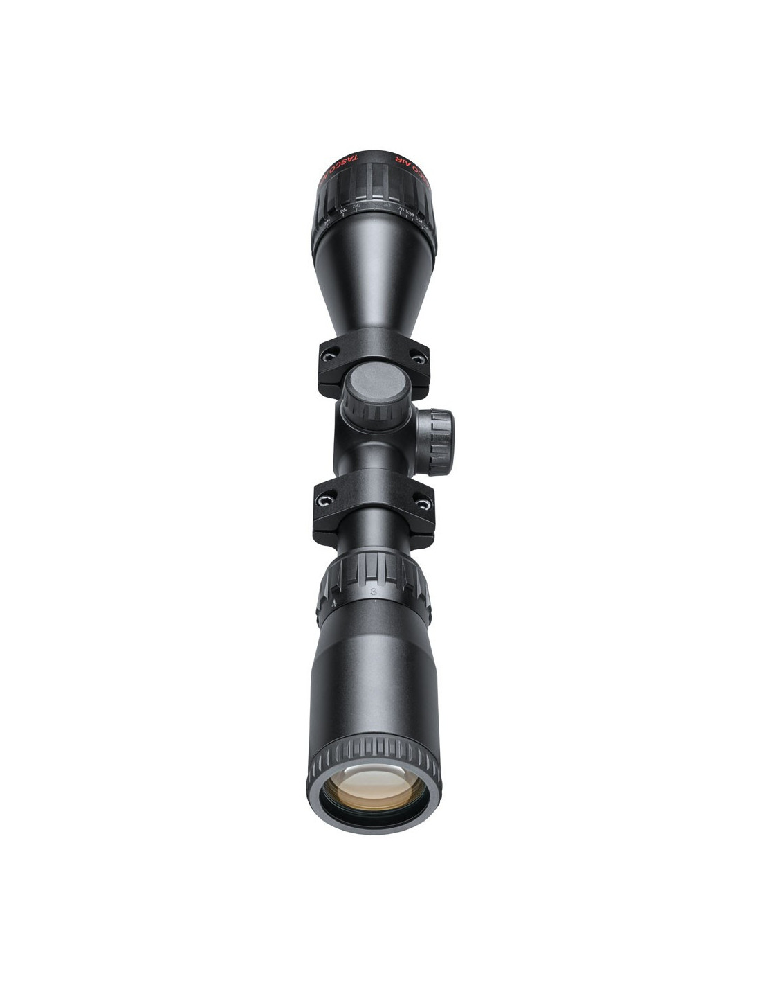 Los visores TASCO Air Rifle están diseñados específicamente para resistir los rigores y el retroceso de las armas de aire comprimido, ya sean neumáticas, de pistón de resorte o de CO2. Se incluyen anillas de montaje para facilitar su uso. El soporte trasero incluye un pasador de tope, que se puede quitar (desatornillándolo) si el arma no tiene el agujero correspondiente.