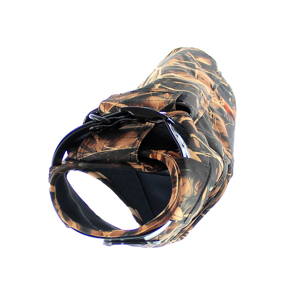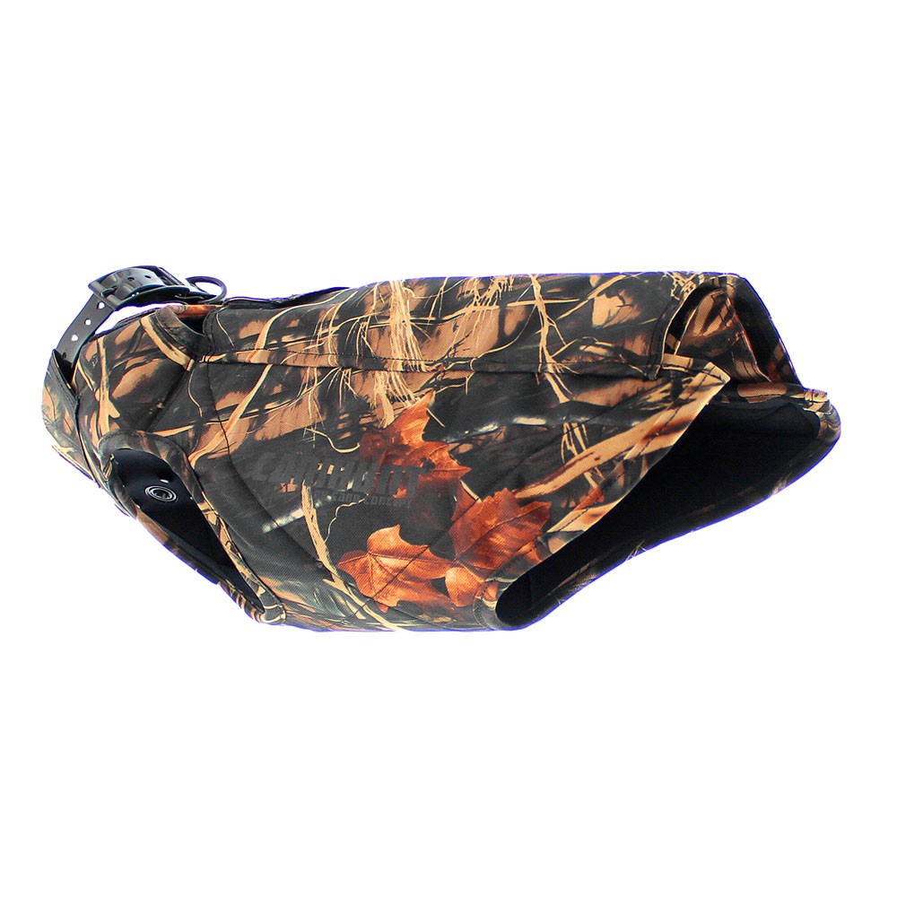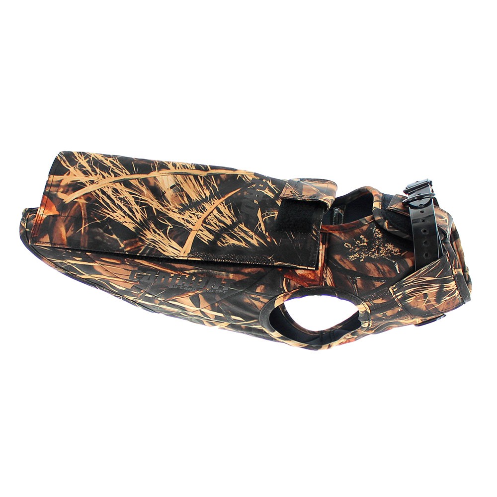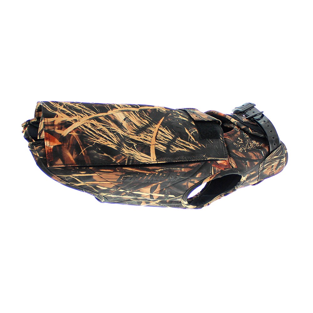 Aumenta la flotabilidad del perro a la vez que regula su temperatura corporal durante la caza gracias a su revestimiento de neopreno.