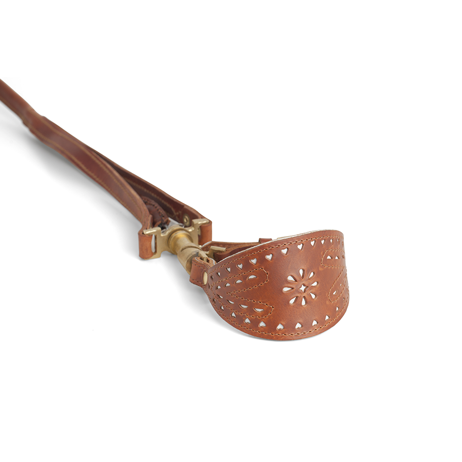 Traílla para galgo de una suelta en piel de becerro máxima calidad, y mecanismo totalmente fiable.