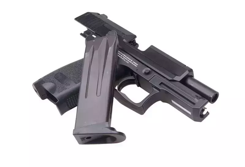 La Heckler & Koch USP se conoció inicialmente como P8, nomenclatura que sigue usando el ejército alemán. Aunque se ha hecho popular bajo el nombre de USP y ahora la usan numerosas unidades policiales y militares en todo el mundo. Esta réplica semiautomática GBB usa el gas alojado en su cargador con capacidad para 25 bbs, para ofrecernos una velocidad media de 330 FPS.