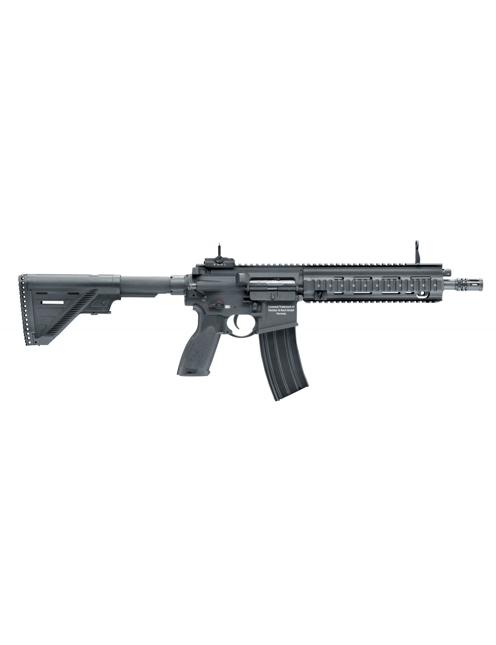 El Heckler & Koch 416 A5 es la versión más reciente de este modelo diseñado por la factoría germana. Esta réplica que nos ofrece Umarex cuenta con la licencia de H&K para replicarlo. Los acabados externos resultan impresionantes y los internos aún más, cuenta con un gearbox con rodamientos de 8 mm, pistón con dentado metálico y un mosfet que alarga la vida útil del conjunto.