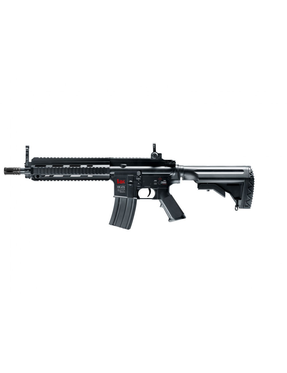 El Heckler & Koch HK 416 CQB (Close Quarters Battle) fabricado por Umarex es una réplica airsoft, con marcajes originales y dimensiones realistas, del fusil considerado como sucesor mejorado de los rifles de asalto M4/M16.
