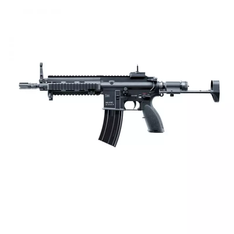 El fusil HK416 diseñado por Heckler & Kock es una versión mejorada de la carabina M4. La unidad Delta Force colaboro con la empresa de armas H&K para desarrollar este nuevo fusil. Esta replica está fabricada por Vegaforce Company y cuenta con marcajes originales. Tiene un guardamanos fabricado por CNC en aluminio que hace que esta replica sea muy robusta. El resto de partes de la réplica están construidas en acero y polímero reforzado. La parte característica de esta replica reside en la culata, ya que cuenta con una culata telescópica que la hace el modelo más corto de los 416.