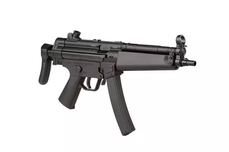 El Heckler & Koch MP5 A5 es un subfusil airsoft fabricado por Umarex, bajo licencia oficial de la marca alemana, que cuenta con una gran cadencia de disparo (hasta 1000 disparos / min). Caja de cambios mejorada, alza regulable como la original o culata retráctil son otras de sus grandes prestaciones.