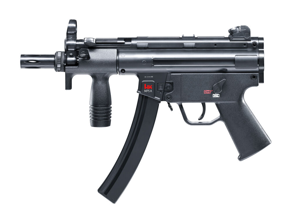 El HK MP5K es un subfusil airsoft fabricado por Umarex, bajo licencia oficial de la marca alemana, que cuenta con una gran cadencia de disparo. En dichos disparos podremos notar la sensación de retroceso, que está generado por un sistema de «retroceso de CO2» en el cual el perno, como el MP5K original, se mueve hacia adelante y hacia atrás. Ello hace que la réplica sea todavía más fiel al modelo de fuego real.
