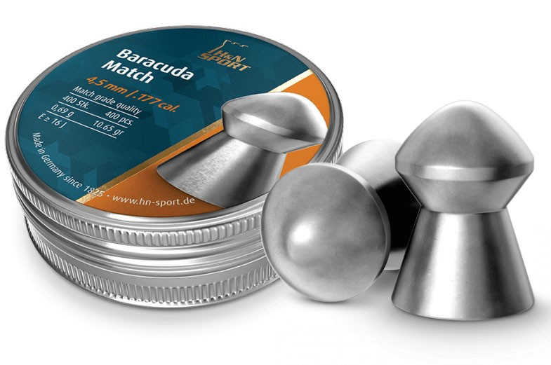 Balín pesado, de alta precisión para distancias largas. Diseño aerodinámico magnífico para un alto poder de perforación y profundidad. Agrupaciones muy pequeñas. Emplomado muy bajo y patrones de tiro homogéneos gracias a la aleación especial y engrase. Seleccionado especialmente. Dimensiones disponibles de cabeza: 4,50–4,52. Liso.