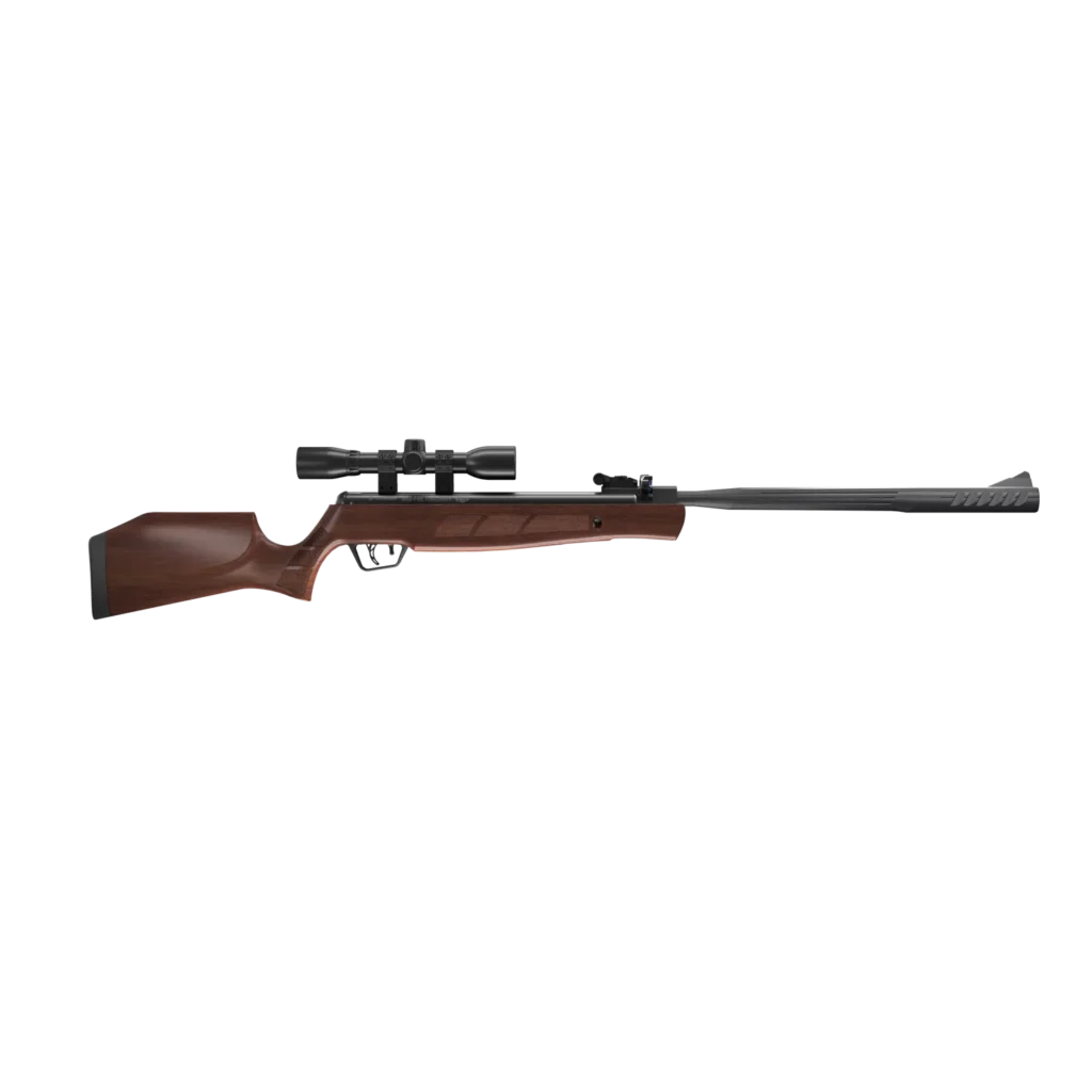 Este modelo destaca por su culata de madera ergonómica, que aporta robustez y un diseño elegante, perfecto para quienes buscan rendimiento sin sacrificar estética. Equipada con un visor 4×32, la carabina mejora la precisión en distancias medias y largas, convirtiéndola en una opción confiable para tiro deportivo y control de plagas. Su gatillo Clean Break de dos etapas permite ajustes personalizados, brindando mayor precisión en cada disparo.