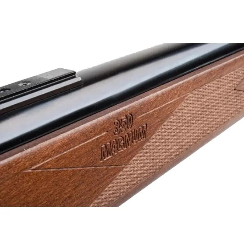 Carabina Diana 350 Magnum Premium Muelle, máxima potencia combinada con una culata premium recta y largo guardamanos. Miras de fibra óptica TRU-GLO y disparador T6 de 3 etapas.