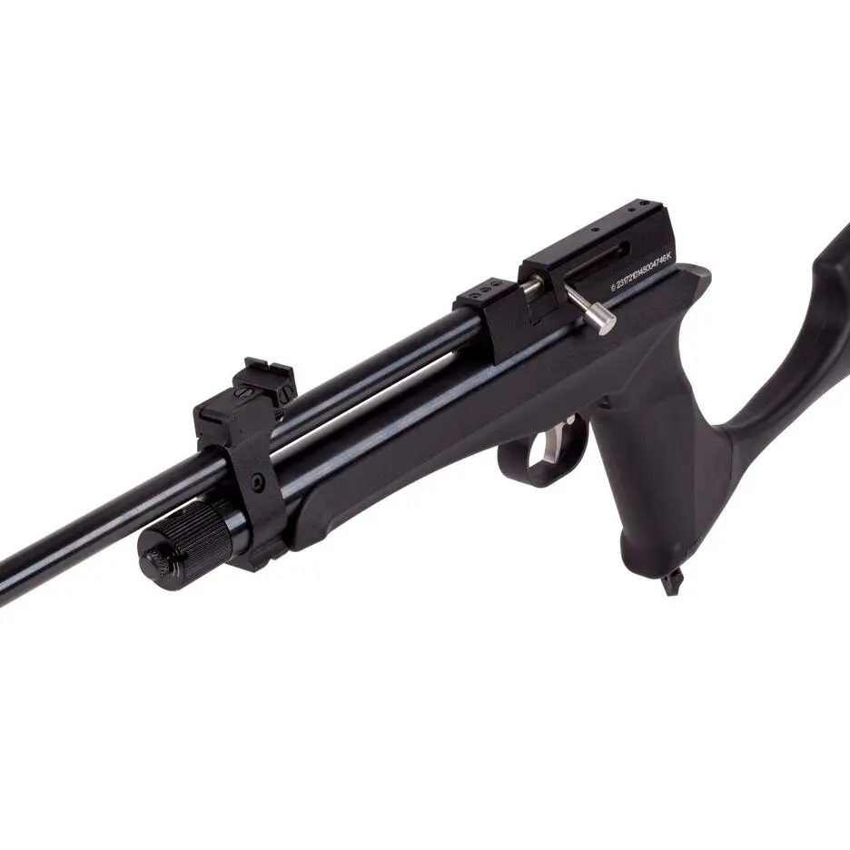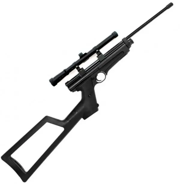 El cañón ofrece mayor velocidad a la pistola. La culata desmontable ofrece más comodidad y precisión al disparo. Tiene incorporado un carril de 11 mm perfecto montar visores para carabinas. El set incluye un moderador de carabina en el cañón largo que reduce el sonido en casi toda su totalidad.