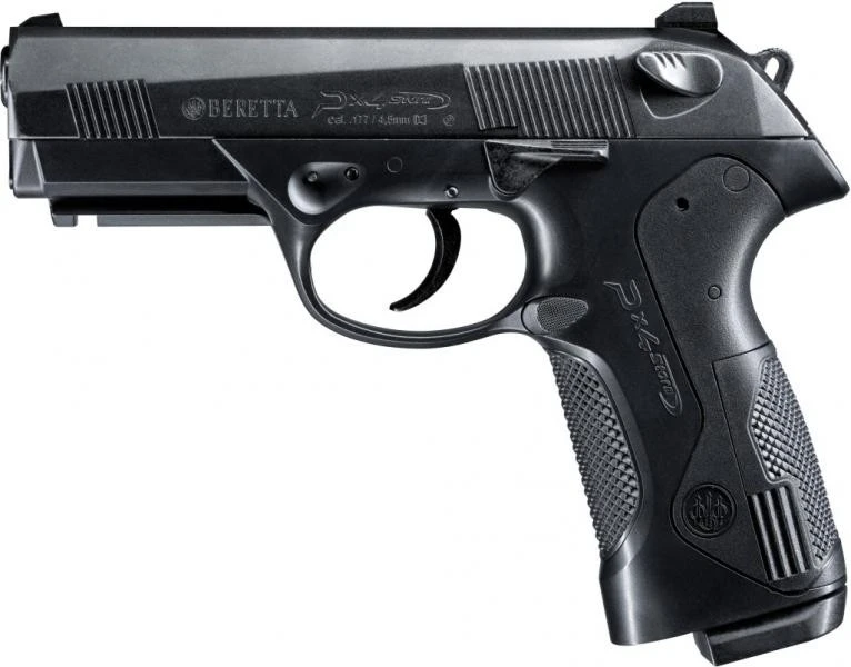La Beretta PX4 Storm es una pistola semi-automática con cañón de acero estriado y corredera con sistema Blowback. Dispone de una tecnología de carga dual con capacidad para 16 balines o BBs. Incluye miras abiertas y Carril inferior para equipar linterna.