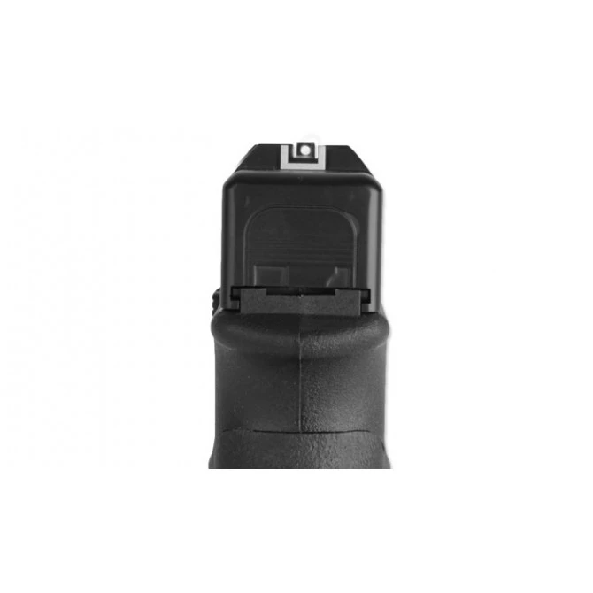 La Glock 19 es una pistola semi-automática que funciona mediante cápsulas de Co2 de 12 gramos. Fabricada en polímero, cuenta con un cargador con capacidad para 16 BBs. Incorpora una corredera fija de metal inoxidable y gatillo de doble acción para aumentar el control del tirador.