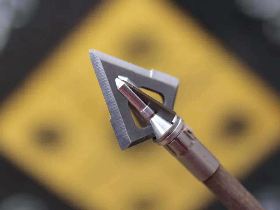 - Punta con 2 hojas de corte y 2 sangradores: Cuchillas de acero inoxidable 420 (1″ de ancho x 1,25″ de largo)