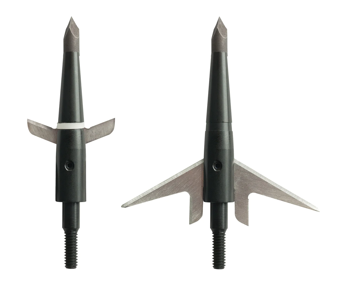 Tras el impacto las dos primeras cuchillas en forma de alas cortan la piel y atraviesan las costillas. La resistencia encontrada sirve como palanca para desplegar las cuchillas principales al tiempo que la flecha avanza. Estas alas son quines reciben el mayor castigo cortando pelo barro piel y huesos durante la entrada. Las cuchillas más pequeñas requieren menos energía para penetrar que una punta totalmente desplegada desde el impacto. Su posición atrasada también ayuda a que l apunta no deslice en tiros cuarteados dejando que la punta se fije exactamente en el punto de impacto.