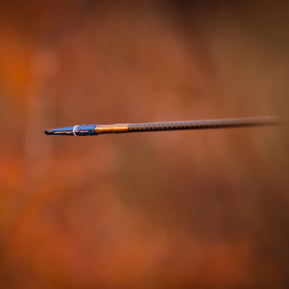 - Nuevo diseño de hoja arqueada de acero inoxidable de .031″, reduce la resistencia, ayuda a retener la energía de la flecha logrando una mayor penetración.