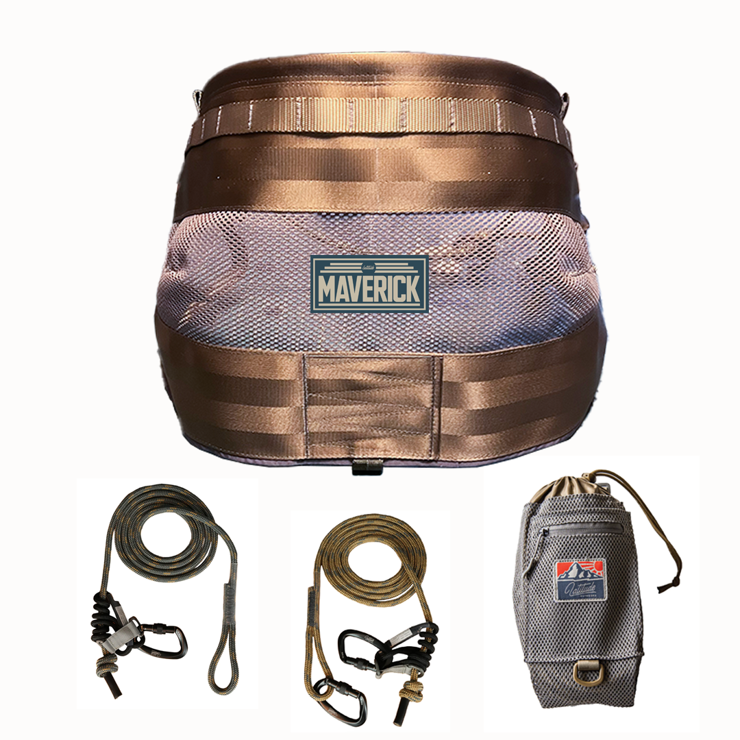 En el kit se incluyen la bolsa de accesorios Method y ARCHERY > NEVERAS de sujeción y ascenso (Tether y Lineman) de primera calidad. Los componentes adicionales incluyen mosquetones de primera calidad y cordinos montados con sistema deslizante autoblocante para operar con una sola mano así como cinchas extraíbles para las piernas.»