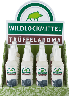 Nuestros atrayentes aromáticos probados y comprobados tienen un olor muy intenso y, por lo tanto, se perciben a largas distancias. El olor irresistible atrae a una amplia variedad de especies de caza. Nuestros atrayentes están listos para usar en cualquier época del año y se pueden llevar cómodamente en el bolsillo cuando ingrese a la zona. Con el práctico atomizador, los atrayentes aromáticos se pueden aplicar rápida y fácilmente a un material de soporte adecuado. El spray de trufa atrae al jabalí con su aroma intenso, simplemente rociar sobre arbustos.