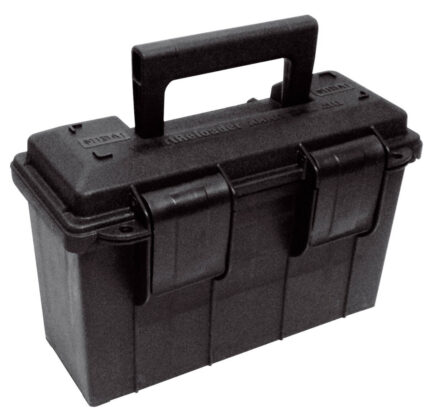 La caja de munición M2A1 #50 coincide exactamente con los tamaños de lata de munición militar .50BMG, pero está hecha de plástico resistente que mejora el almacenamiento de sus municiones. Puede incluso dejarse las municiones sueltas en la caja, puede llevar cargadores, las paredes de polímero lo resisten todo. Y la caja puede transporta más de 35 Kg. Toda la estructura de la caja está hecha de polietileno de alta densidad y de gran solidez que es resistente a los disolventes y productos químicos.