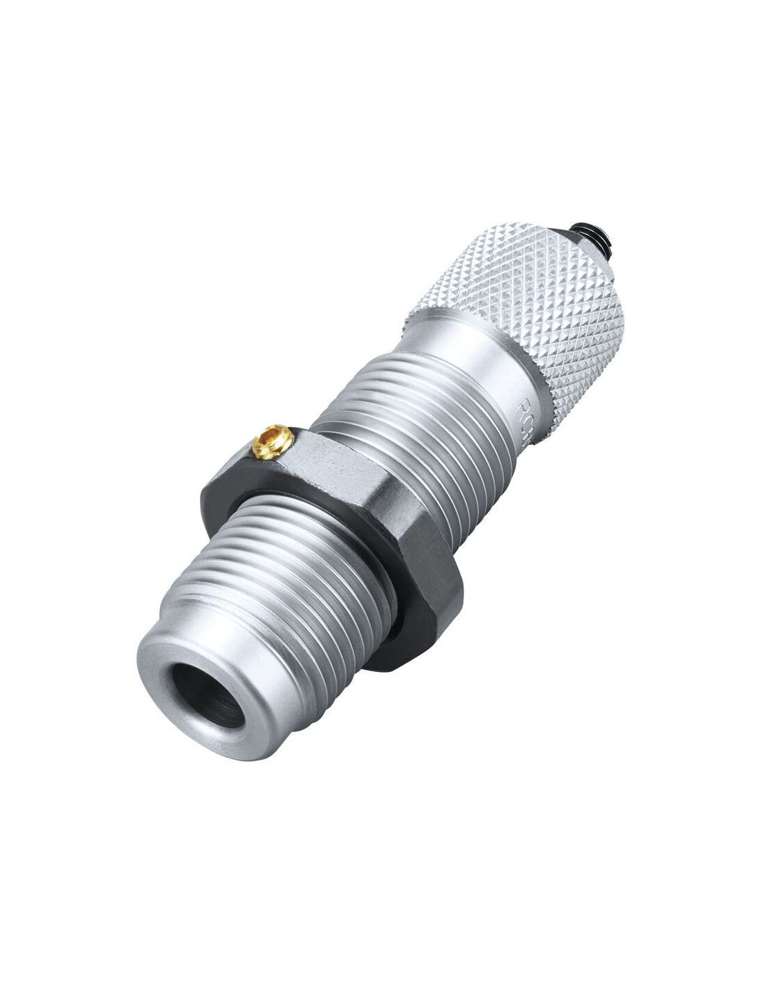 Este juego de 2 Dies está diseñado para recargar cartuchos de cuello de botella que se dispararán solo en rifles de cerrojo. Consta de un troquel de tamaño de cuello con una unidad de expansión y desempistonado y un troquel de asiento con tapón de asiento de bala. Este Die cambia el tamaño del cuello solamente,