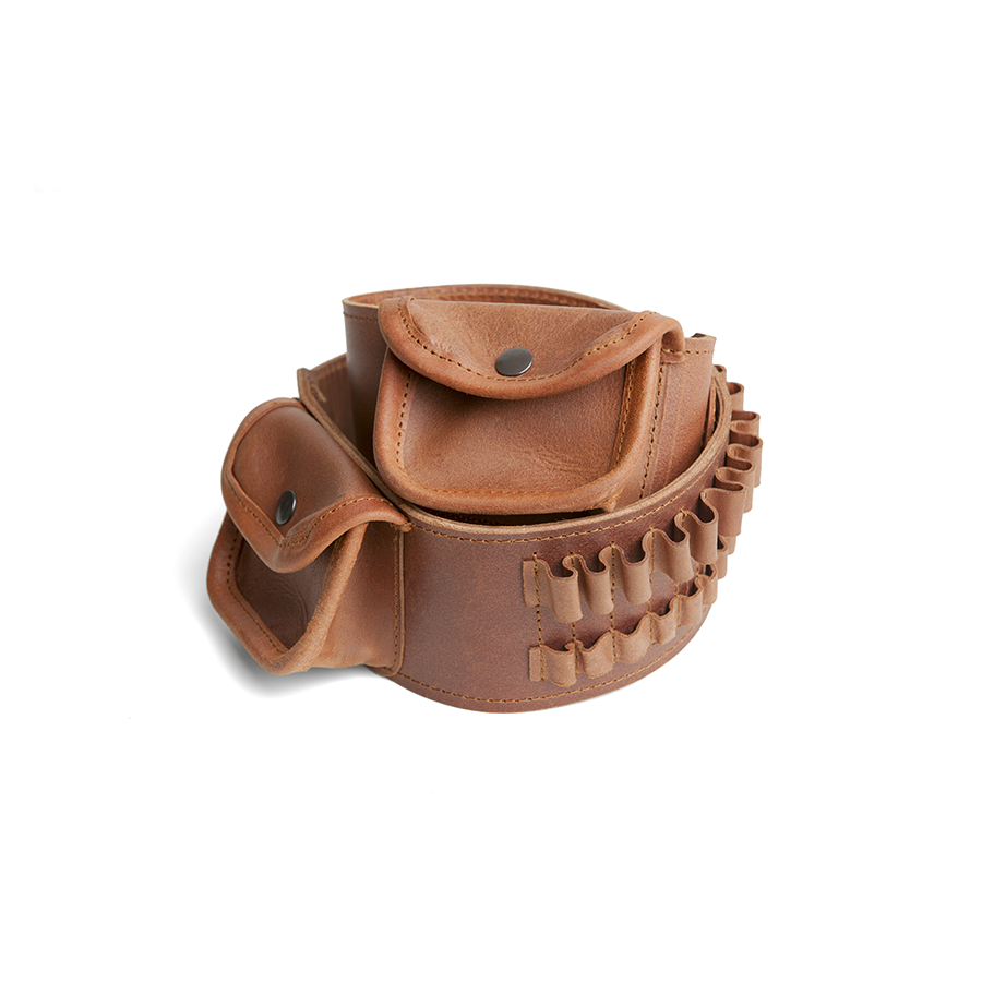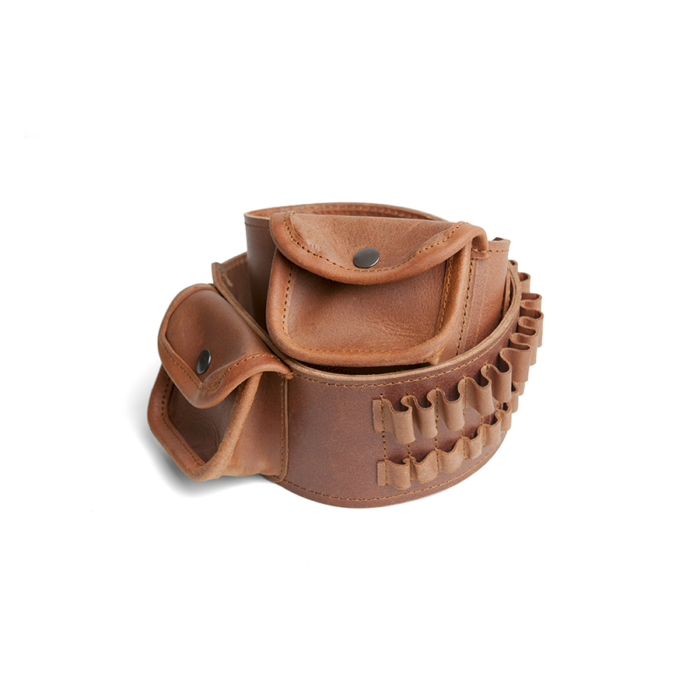 Canana para 20 balas con porta cargadores, en piel de becerro máxima calidad, disponible en varios calibres 30-06 y 300.