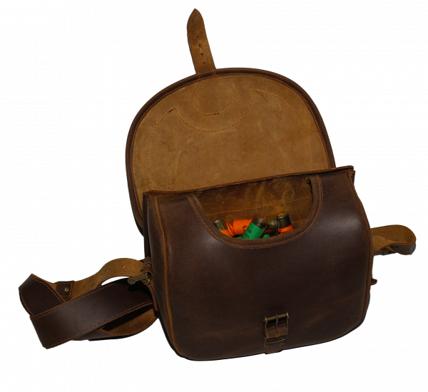 Bolso para cartuchos modelo ingles en cuero engrasado, capacidad para 150 cartuchos