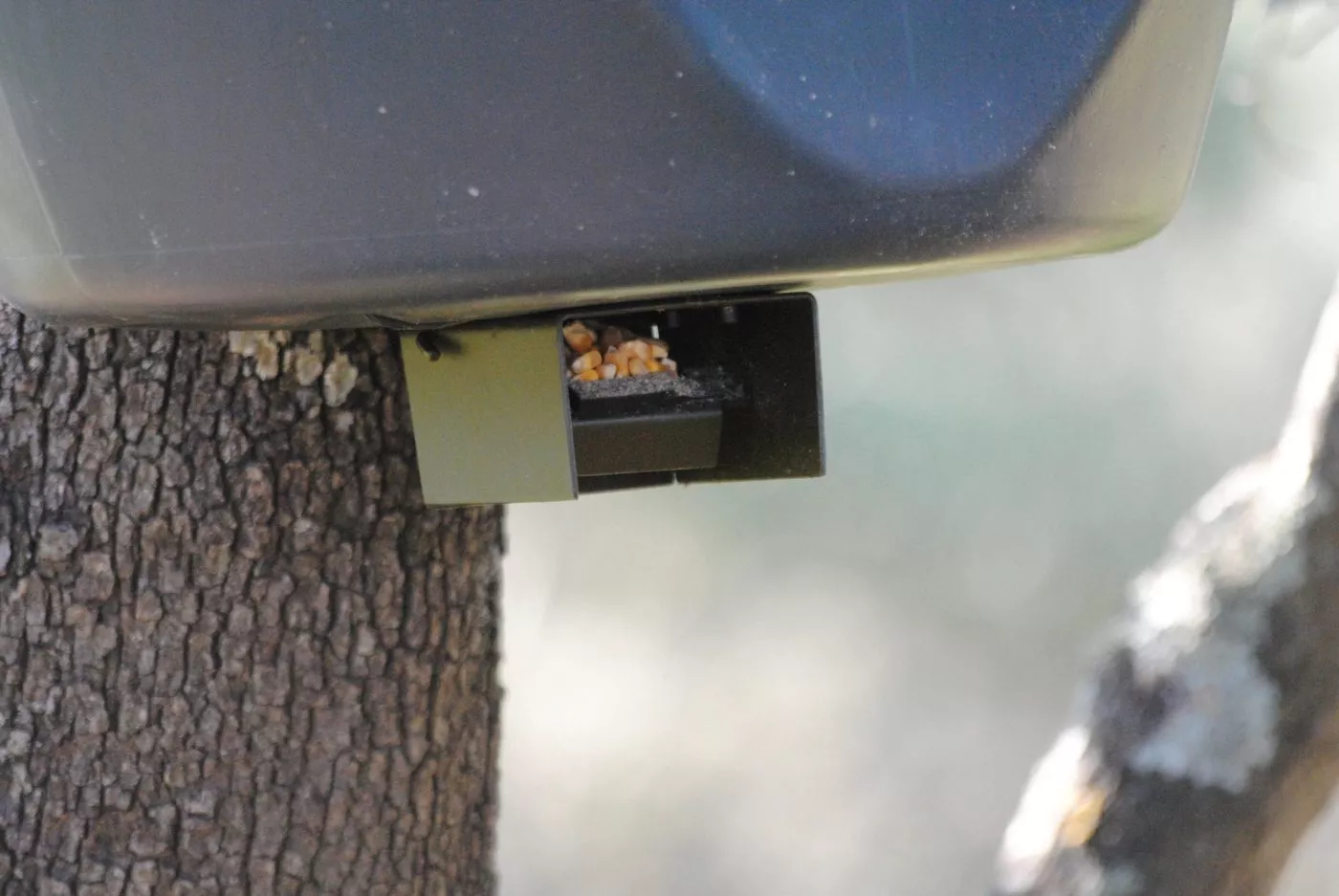 La trampilla BSF Yimi es un dispensador mecánico de alimento para jabalíes que regula la salida de grano o pienso de cualquier depósito al ser accionada por éstos.