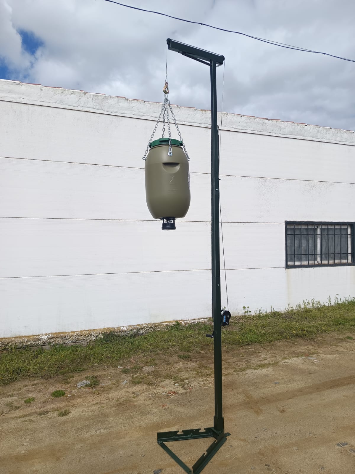 Este sistema permite elevar y descender el comedero con facilidad, evitando cualquier esfuerzo físico por parte del usuario. La robustez del acero garantiza que el soporte sea resistente ante las inclemencias del tiempo y el desgaste diario. Además, este soporte se puede instalar en diversas ubicaciones, adaptándose a las necesidades específicas de su operación.