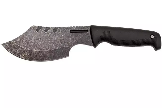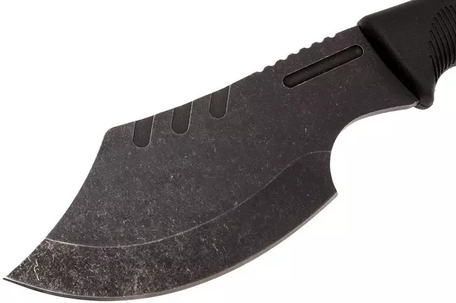 El mango está hecho de goma que te ofrece suficiente agarre. Sostenible y cómodo a temperaturas muy frías. Puedes llevar el AxeBlade en la funda de kydex incluida. Se ha mejorado con un clip para el cinturón (máx. anchura del cinturón 5,0 cm). Viene con una correa adicional para que puedas sujetar la parte inferior de la funda a tu pierna y evitar que quede colgando. Por supuesto, también puedes utilizar esta correa para colgarte el AxeBlade al hombro, como prefieras.