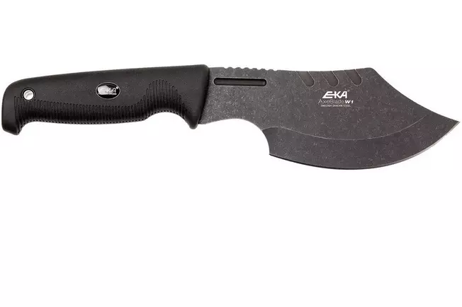 El EKA AxeBlade es una especie de híbrido entre un cuchillo fijo y un hacha. Por un lado tienes la longitud y el centro de gravedad en la parte delantera como con un hacha. Por otro lado, la hoja es lo suficientemente fina como para agarrarla cerca del filo para las tareas más detalladas. Al combinar estas dos cualidades, es un gran compañero para las aventuras de acampada en las que no se puede llevar demasiado equipo. Como tal, puedes sustituir un cuchillo y un hacha por un AxeBlade.