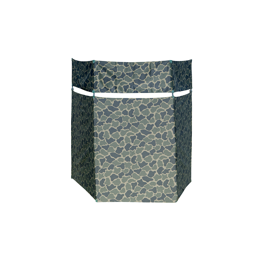 Pantalla portátil de tres caras para puesto fijo, con armazón de hierro de gran resistencia, tela de camuflaje y remates en piel de gran calidad. Incluye correa en piel vaqueta cuero viejo de gran calidad y resistencia
