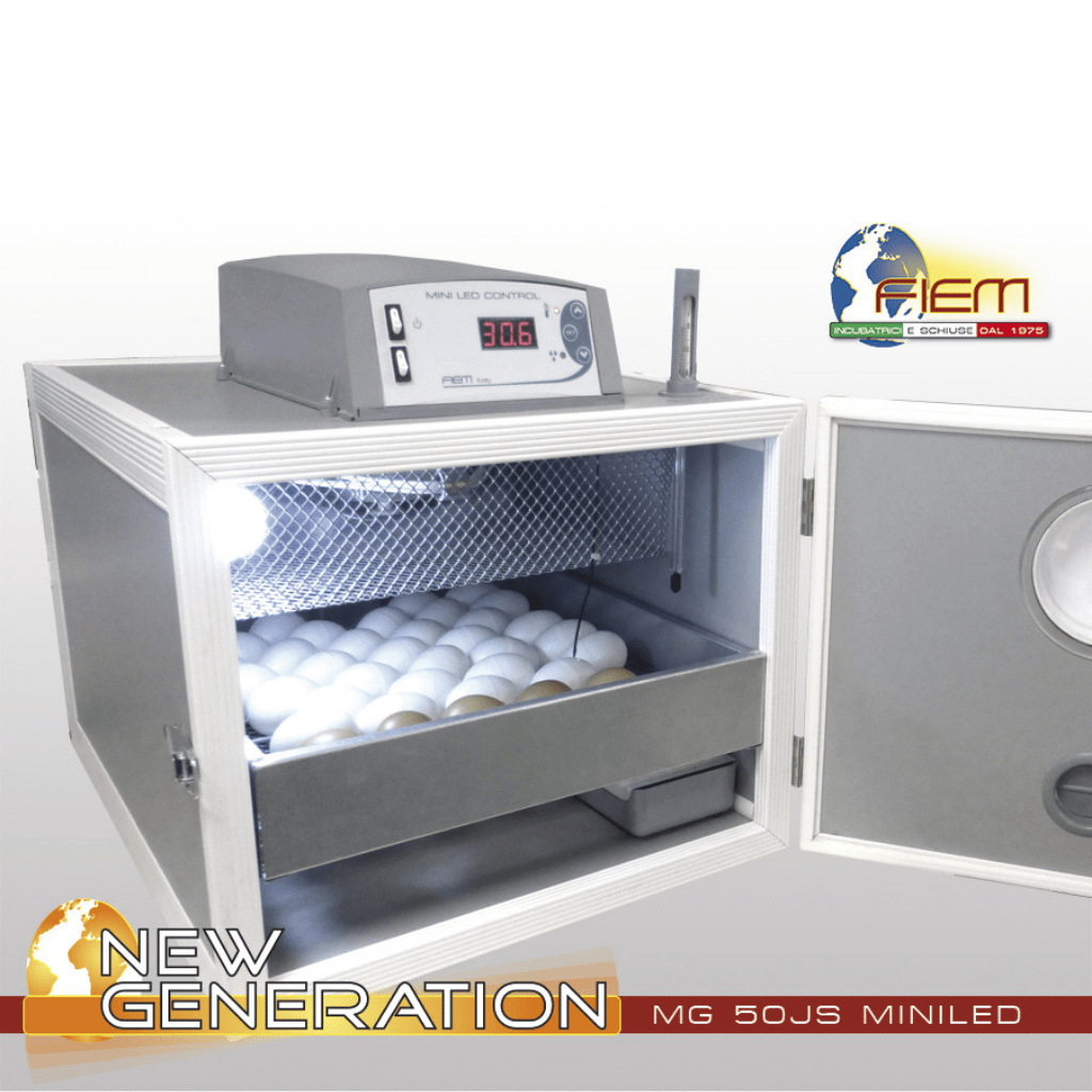 • Es la más pequeña de la gama tradicional. La incubadora MG 50 Junior Special está provista de un sistema de volteo de los huevos automático ya incluido en la máquina (o manual, si se solicita) gracias a una rejilla universal idónea para todos los tipos de huevos y con posibilidad de exclusión del movimiento (durante la fase de eclosión) simplemente retrayendo el cajón aproximadamente un centímetro.
