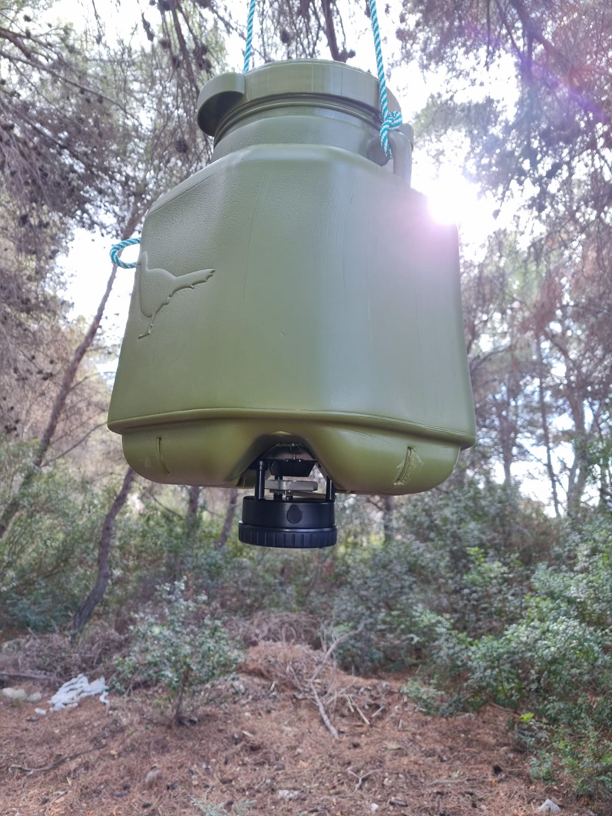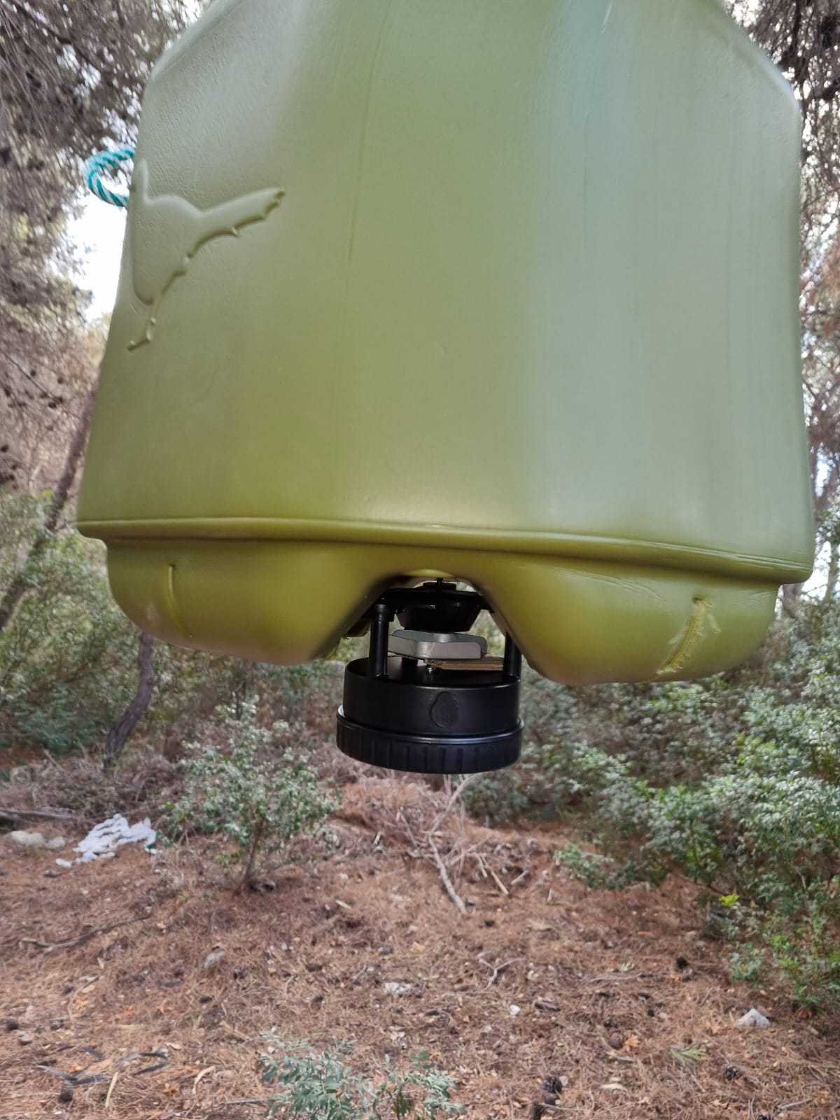Bidon de 40 litros en color verde compacto y de reducido tamaño con dispensador automático es ideal para cebaderos, comedero, de jabalí siendo el más utilizado por los cazadores por su gran autonomía, uso con 4 pilas AA ,fiabilidad garantizada.