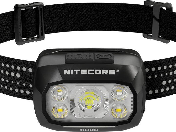 Linterna frontal LED NU30 recargable con una potencia de 500 lúmenes y alcance de 130 metros. Incluye luz blanca, CRI alto y luz roja, con batería integrada de 1.500 mAh recargable vía USB-C. Compacta, resistente con certificación IP66, ideal para actividades al aire libre y running nocturno.