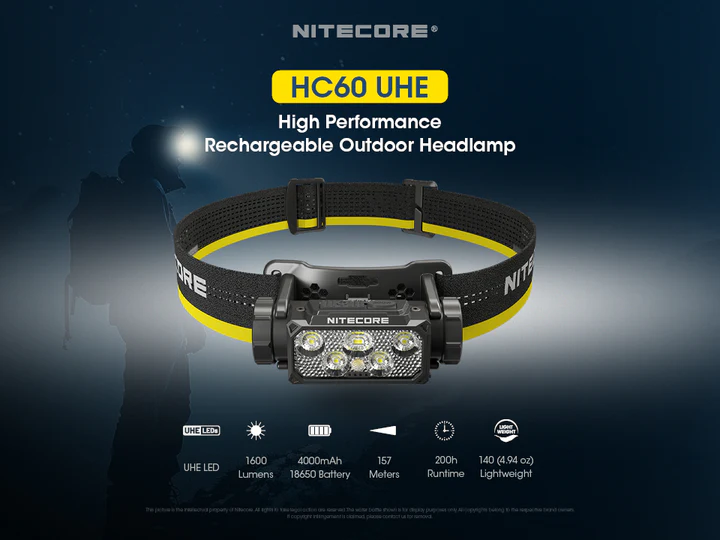 La linterna frontal recargable con Nitecore HC60 UHE LED, 1600 lúmenes es una linterna frontal increíblemente brillante y supereficiente con 6 LEDs UHE. Estos son los últimos LED lanzados por Nitelab en 2024. Los LEDs UHE (Ultra High Efficiency) proporcionan una eficiencia mejorada y ofrecen la opción más brillante y energéticamente eficiente para linternas frontales en la actualidad. La linterna frontal tiene un aspecto robusto y es resistente al polvo y al agua. Con su haz luminoso y amplio, esta linterna frontal es ideal para acampadas, ciclismo, escalada y senderismo.