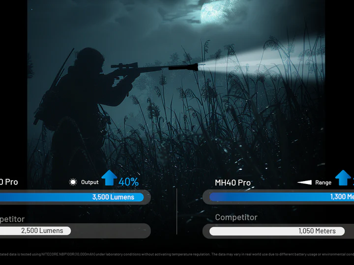 Descubre el KIT de caza MH40 PRO de NITECORE. La potente linterna MH40 ahora en KIT DE CAZA que incluye: