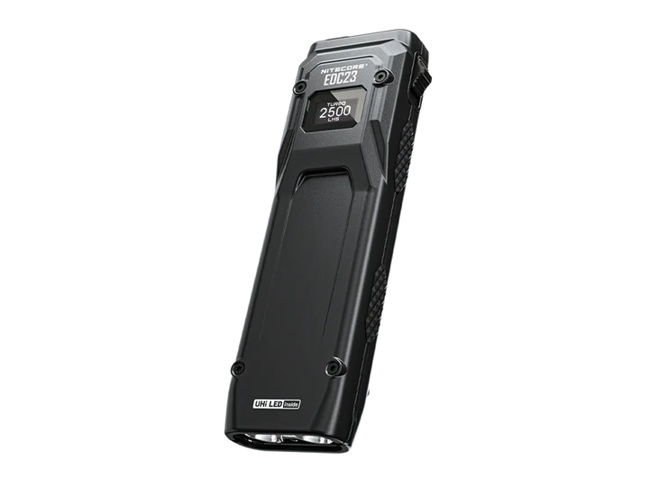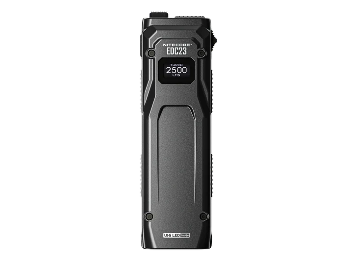 Linterna de Bolsillo Plana EDC23 con pantalla OLED y 2.500 lúmenes de potencia. Diseño compacto y recargable vía USB-C, ideal para actividades al aire libre y uso diario. Alcance de hasta 280 metros y resistencia al agua y al polvo con certificación IP54.