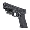 Módulo de luz con 800 lúmenes de potencia y 515 metros de alcance que dispone de luz de inundación y luz de foco. Sirve tanto par arma corta como para larga ya que cuenta con carril adaptable a Riel Picatinny y Riel Glock. Está alimentada por dos baterías CR123A de 1600mAh y está diseñada para poder usarse con ambas manos.