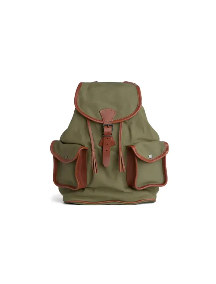 Mochila en lona verde de gran resistencia, con remates en piel de gran calidad.