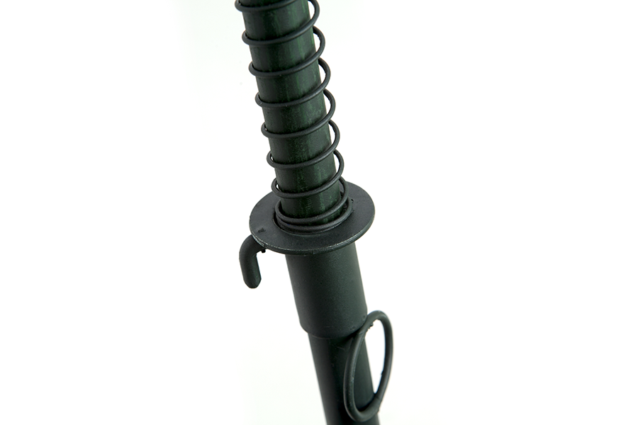 Soporte telescópico para jaula de reclamo perdiz, en hierro hueco color verde. Mecanismo de diseño propio totalmente fiable.