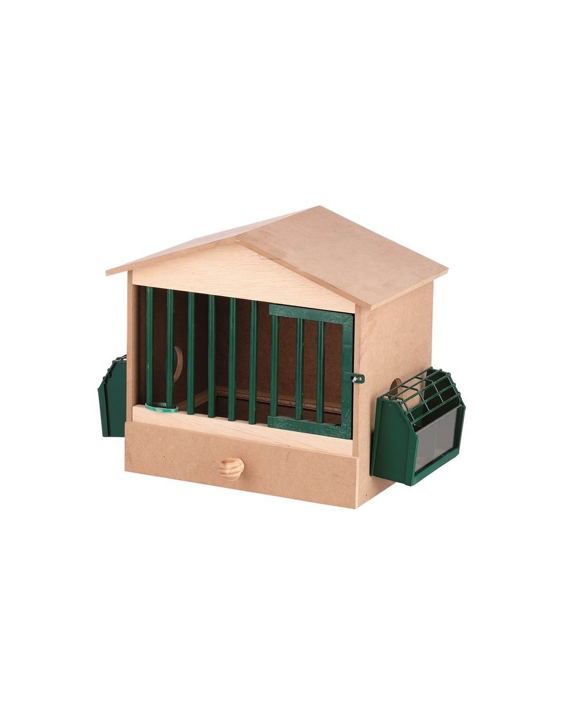 Jaula de madera para perdices para el campo con 1 departamento. Fabricada en madera DM (aglomerado elaborado con fibras de madera). Dispone de cajón inferior para su fácil limpieza. Dispone de comedero y bebedero.