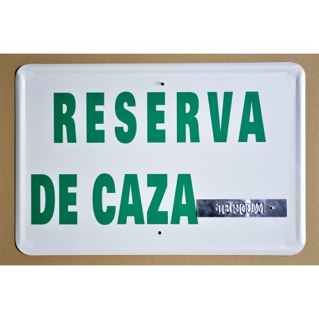 Tablilla Reserva de Caza utilizada para informar de Reserva de Caza en España con medidas 50×33.