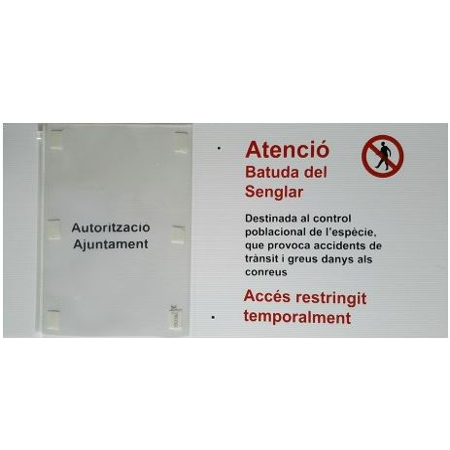 Tablilla Atenció Batuda del Senglar utilizada para la advertencia en Cataluña con medidas 70×33.
