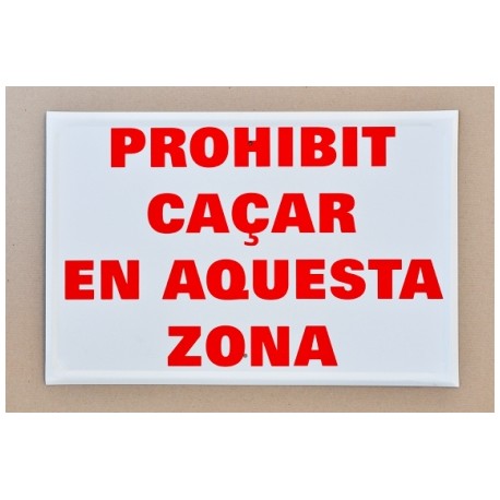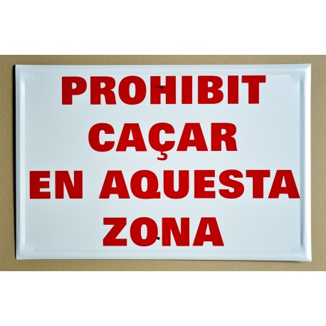 Tablilla PROHIBIT CAÇAR EN AQUESTA ZONA 50×33