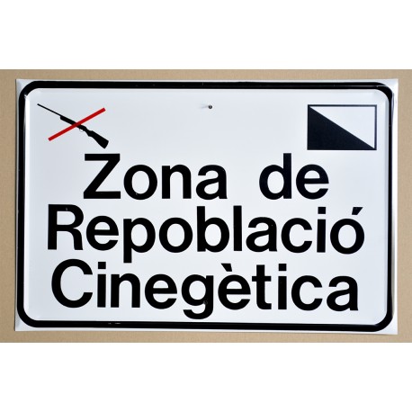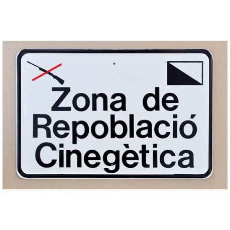 Tablilla Zona de Repoblació Cinegètica utilizada para la advertencia en Cataluña con medidas 50×33.