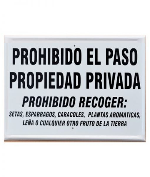 Tablilla Prohibido el Paso Propiedad Privada Prohibido Recoger Setas… utilizada para la señalización en España con medidas 50×33.