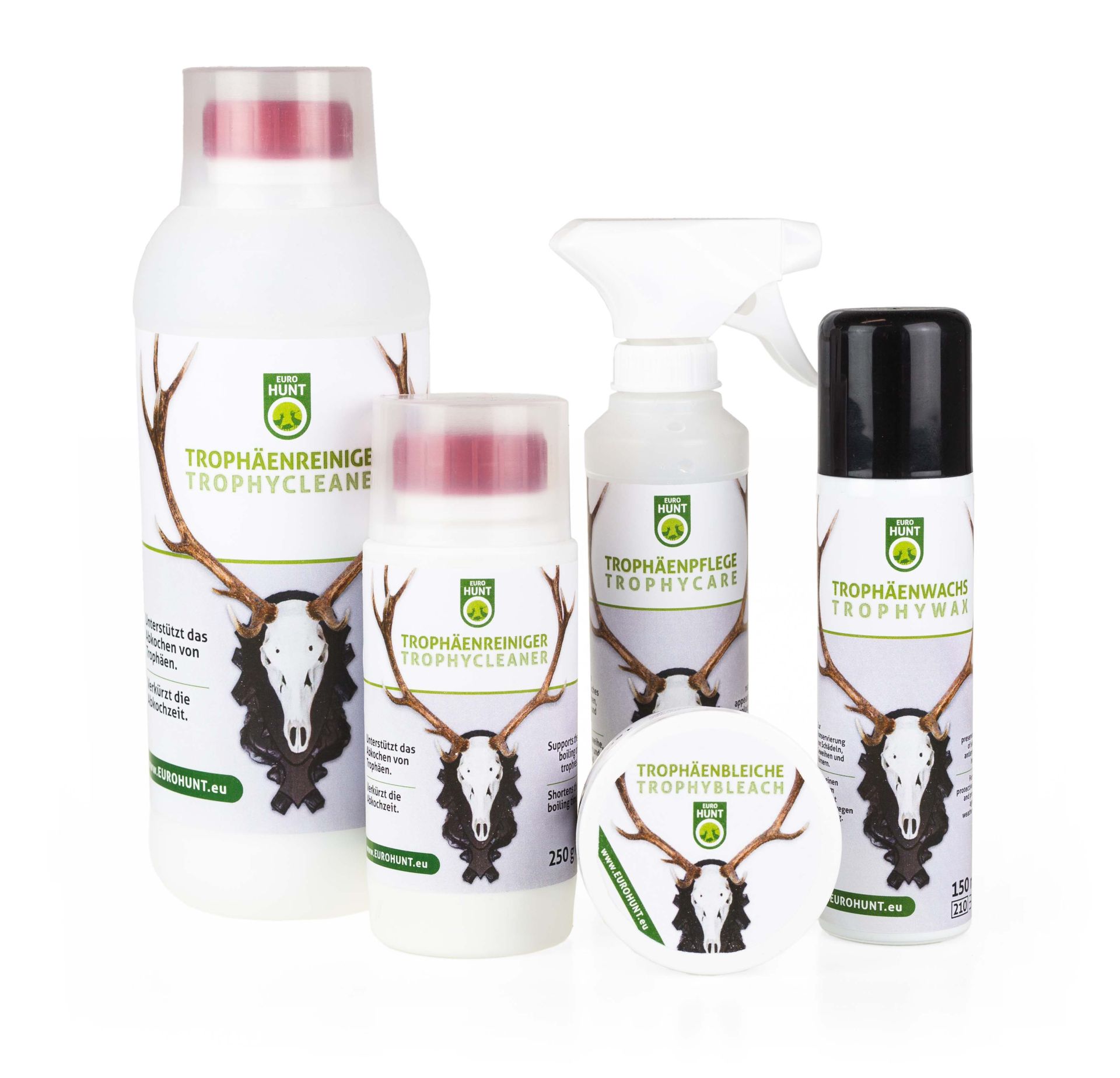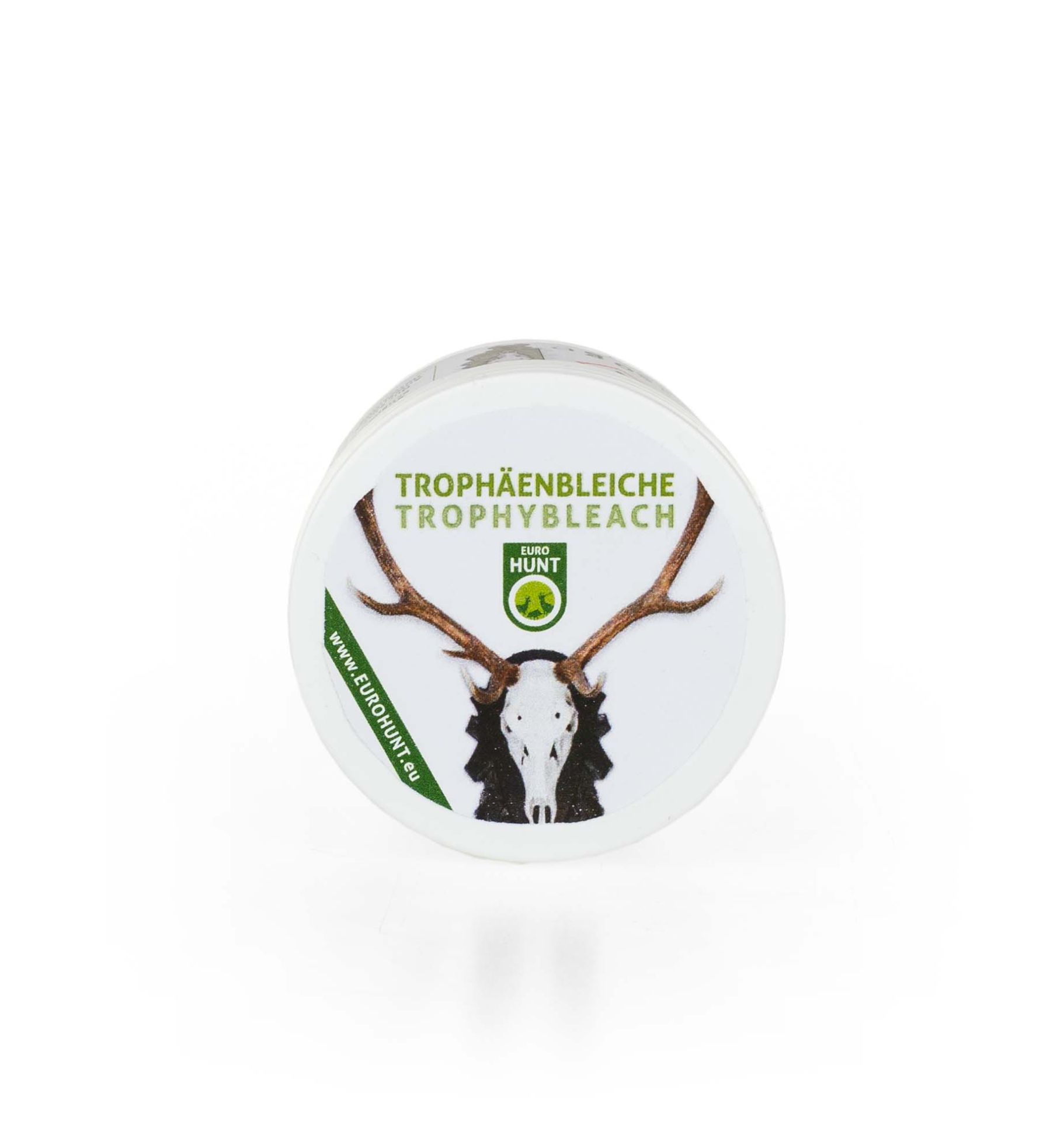 El blanqueo de trofeos se utiliza no sólo para blanquear trofeos nuevos, sino también para revivir los más antiguos. La fácil aplicación y la eficacia de blanqueo aseguran una perfecta blancura del cráneo sin decoloración indeseable de astas o cuernos. El contenido del envase es suficiente para 5 corzos o 2 cráneos de ciervo