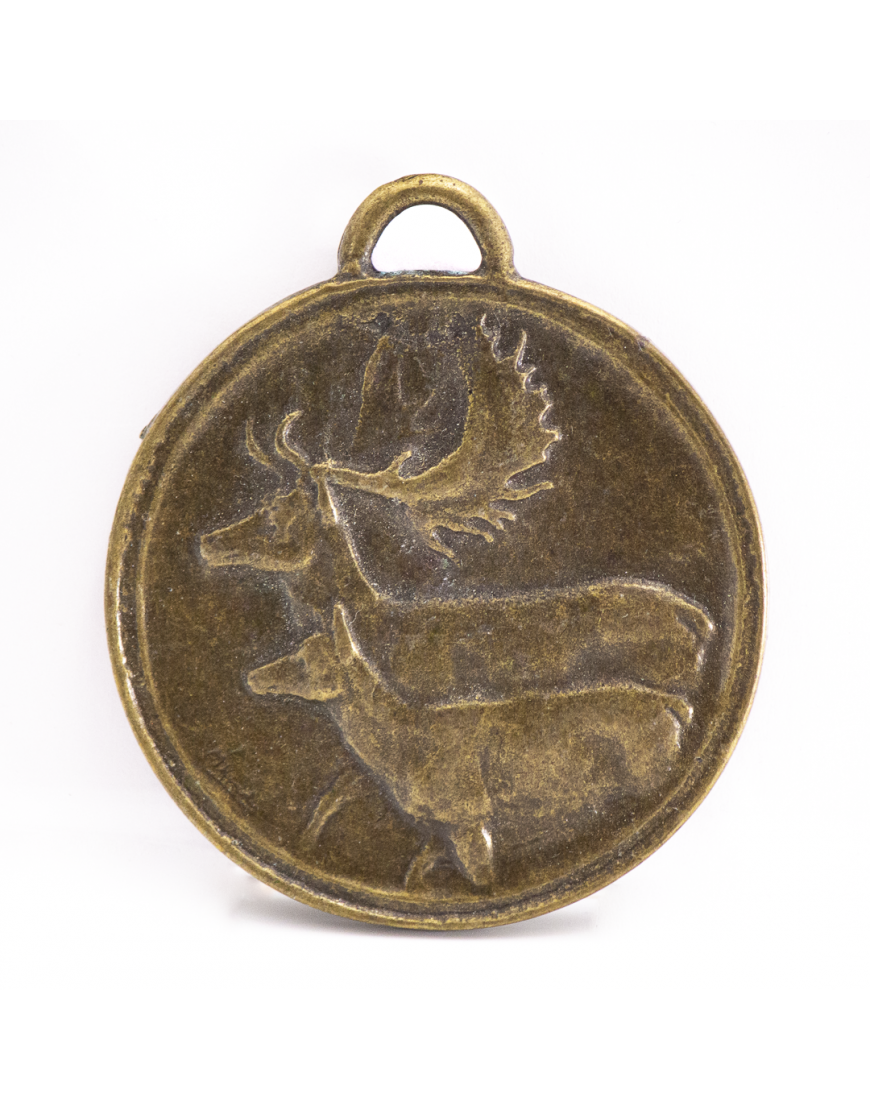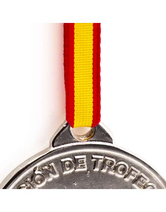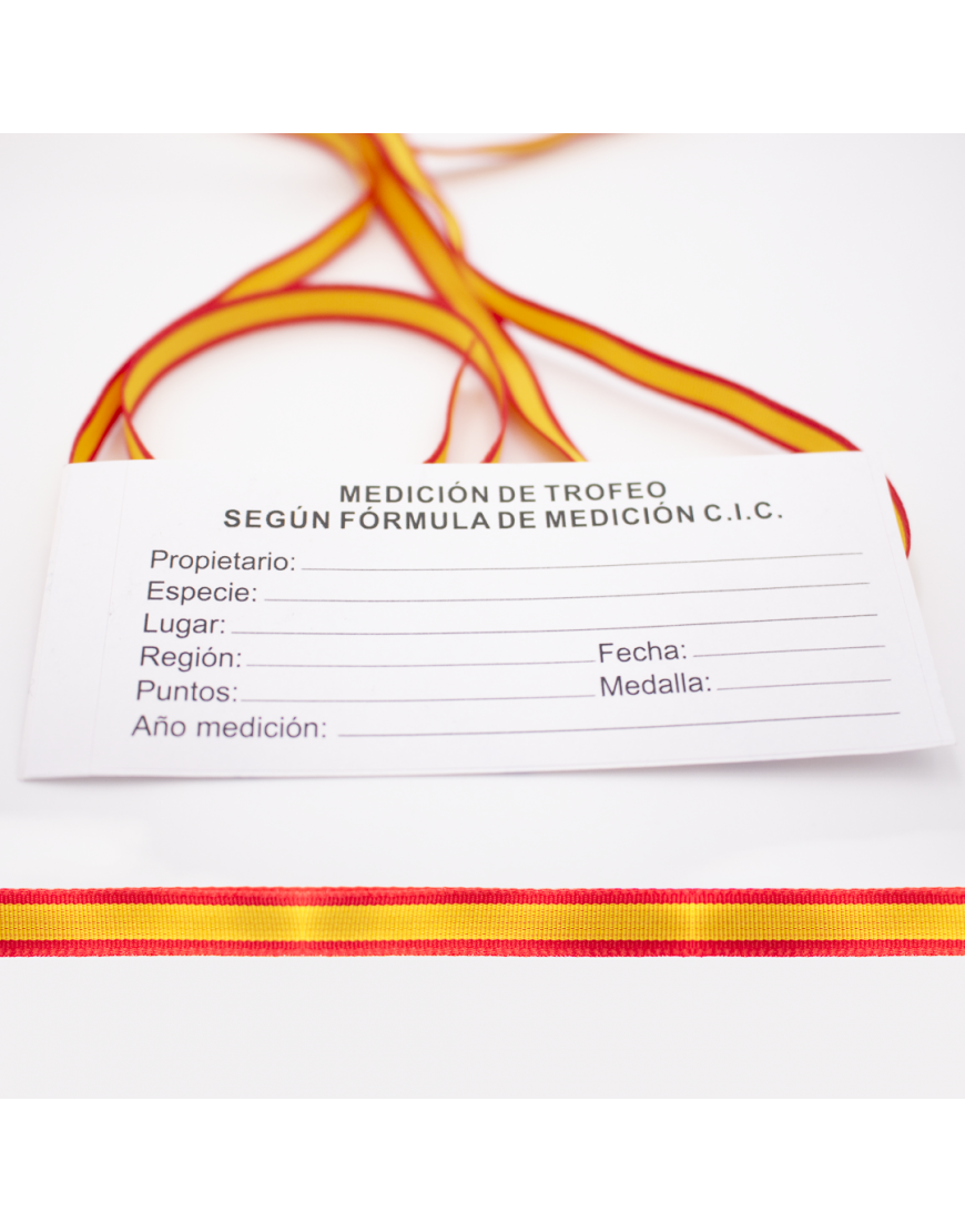 Medalla de homologación para trofeo de gamo. El pack incluye medalla, cinta con bandera de España para colgarla y tarjeta para rellenar los datos del trofeo con pegatina para poder pegarla en la cara posterior de la peana del trofeo. Disponible en las tres opciones de homologación: oro, plata y bronce.